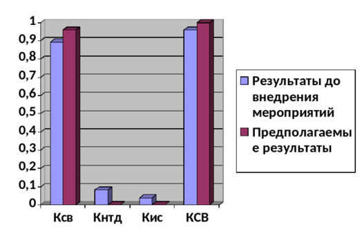 | Коэффициенты | Результаты до внедрения мероприятий | Предполагаемые результаты | Отклонение |