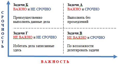 В зависимости от степени срочности и важности задачи различаются 4 возможности их оценки выполнения представленные на рисунке 4 17, с. 63: