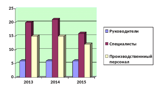 Анализ движения рабочей силы выявил, что среднесписочная численность работников уменьшилась на 8 человека за период с 2013 по 2015 годы. Это происходит с силу разных причин, во-первых, достаточно молодой коллектив, которому необходимо постоянное развитие и свойственно стремление к чему то лучшему. В данной организации карьерного роста нет, здесь каждый сотрудник выполняет отведенную ему работу без перспектив развития. Во-вторых, низкая материальная и нематериальная мотивация сотрудников. В-третьих, свою роль сыграла нестабильная экономическая ситуация, которая отразилась на уровне заработной платы сотрудников. Все это способствовало сокращению штата сотрудников в 2014 году. Однако, следует отметить, что производительность труда с каждым годом растет. В 2015 году по сравнению с 2014 возросла на 12,6 тыс. рублей, что говорит о высоком уровне квалификации персонала.