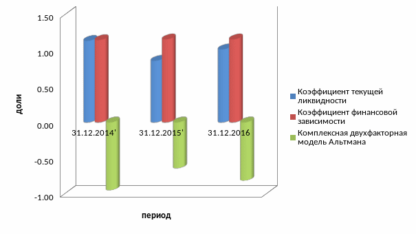 Данные результата оценки вероятности банкротства ФГУП «РТРС» за период 2015-2016 гг., представлены ниже на рисунке 2.9