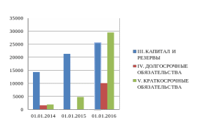 Таблица 2.4 - Горизонтальный анализ пассива бухгалтерского баланса ООО « Корунд » за период 2014-2016 г.