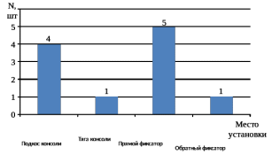 Немаловажным фактором также является и место установки изолятора. На рисунке 1.4 изобразим количество отказов изоляторов в различных местах установки.