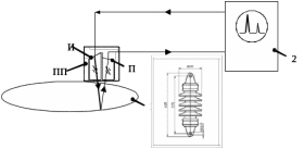 2 – индикатор (прибор А 1212); ПП – раздельно-совмещенный преобразователь; И, П – излучатель и приемник ультразвуковых колебаний соответственно