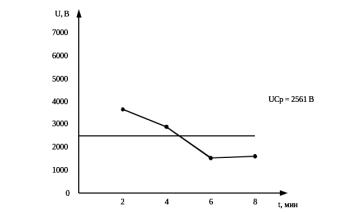 Далее определим пропускную способность участка. Для этого потребуется найти среднее значение напряжения на токоприемнике за время прохождения составом лимитирующего участка при максимальном грузообороте и минимально возможном межпоездном интервале.