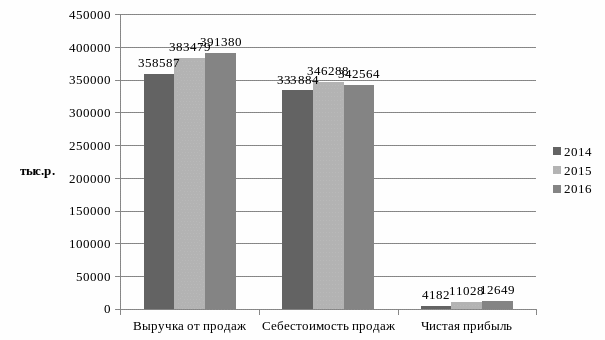 Рисунок 2.6 – Динамика показателей финансовых результатов ООО «Пластик Плюс» за 2014-2016гг.