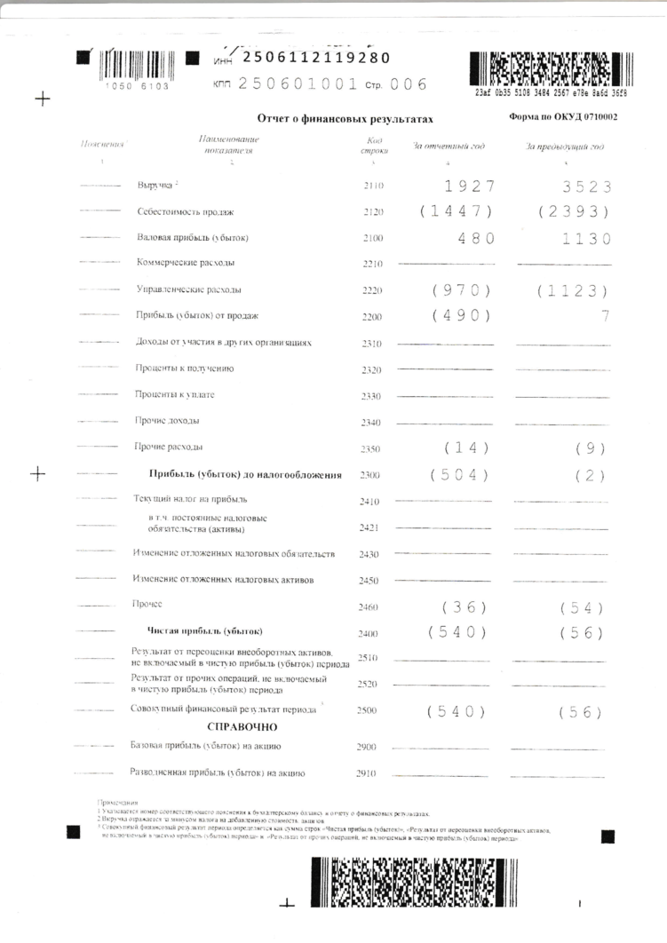 – на конец отчетного периода по статье «Нераспределенная прибыль (непокрытый убыток)» предприятие получило убытки в размере 439 тыс. руб.;