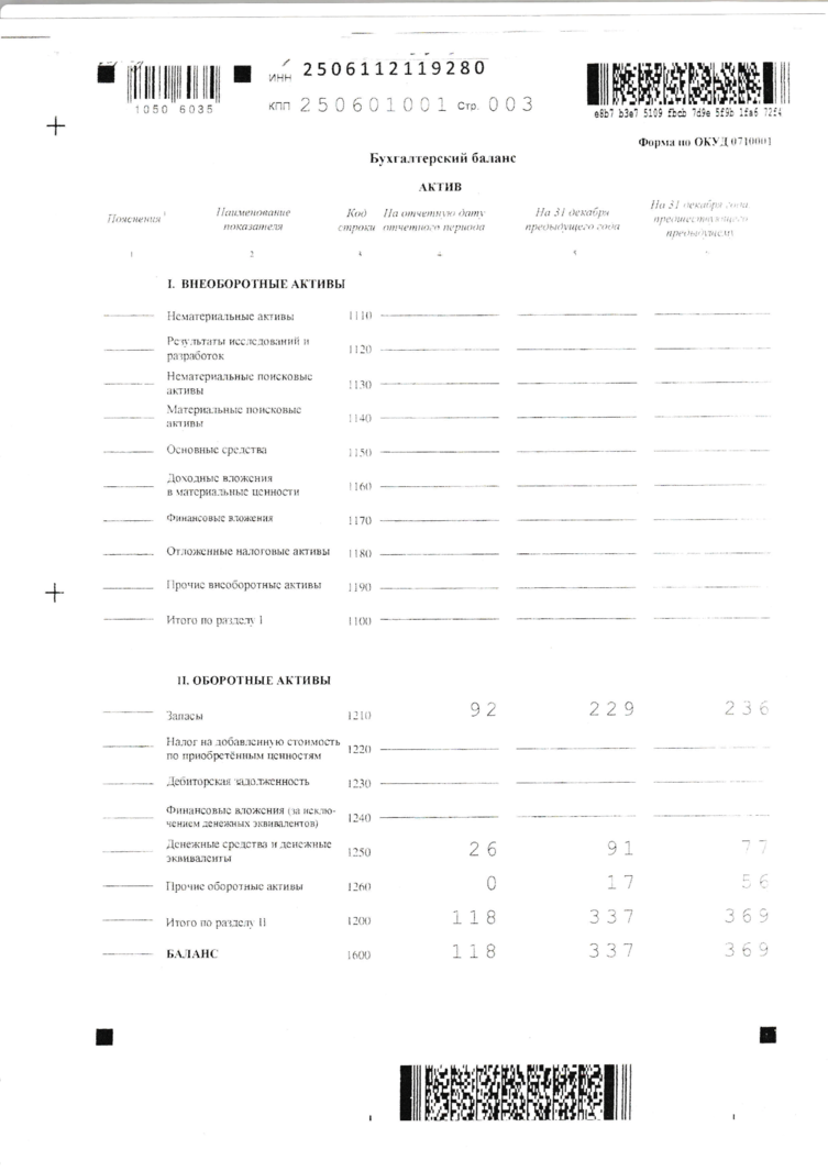 В результате исследования, были выявлены следующие отличительные признаки в составе и структуре статей баланса ИП Олемской В.А.