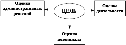 Потенциал (дальнейшее развитие) – выявление потенциала сотрудников, получение обратной связи, развитие карьеры, личное развитие, корректировка планов организации, информирование сотрудников о том каких результатов от них ждет организация, планирование человеческих ресурсов организации, стандарты деятельности.