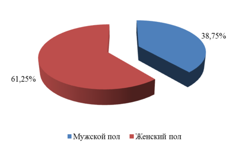Как видно из рисунка 10 сотрудников женского пола в учреждении все же больше, но разница не слишком велика.