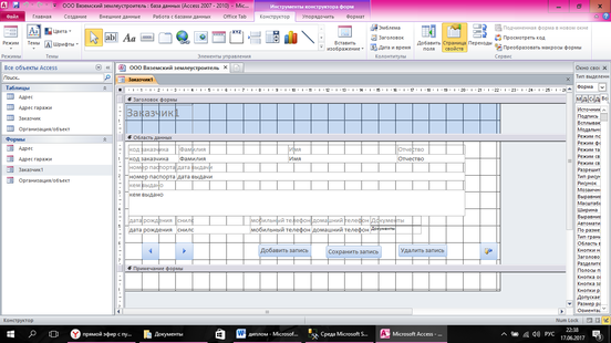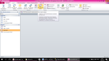 Для простоты заполнения данных таблиц нужно было создать формы для заполнения. В Microsoft Access создаем формы с помощью конструктора форм(рисунок 16).