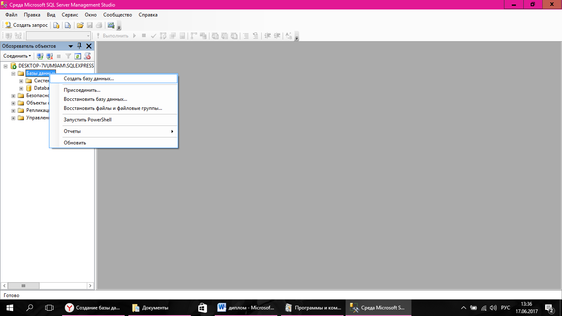 Рисунок 7 – Создание базы данных