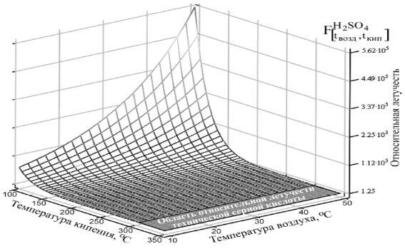 Характер изменения относительной летучести серной кислоты в зависимости от температуры кипения и температуры окружающего воздуха.