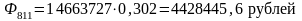 Ф=1466372,7+439911,8+4428445,6=6334730,1