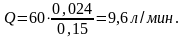 Расход жидкости, л/мин, определяем по формуле: