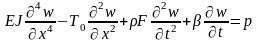 где w(x,t) – малые поперечные перемещения точек геометрической оси провода; E – модуль упругости материала провода (либо его величина, осреднённая по площади сечения, если провода или кабель неоднородны); J – момент инерции сечения относительно оси изгиба;
