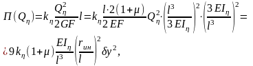 Из [64] получим, что потенциальная энергия деформирования упругой системы есть квадратичная форма обобщённых перемещений: