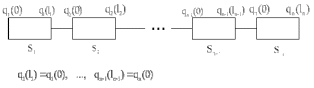 Матрицы переноса позволяют создать динамическую модель пролёта с любым числом гасителей и произвольным расположением гасителей. Методика объединения состоит в следующем: рассматривается последовательное соединение элементов, для которых известны соотношения переноса (рис. 4.7):