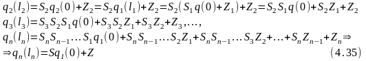 , в силу (4.37) становится известным вектором. Воспользовавшись соотношениями (4.34) можно определить последовательно вектор состояния на стыке любых двух элементов системы, в том числе