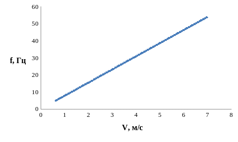 Рисунок 5.1 – Зависимость частоты вибрации f от скорости ветра V