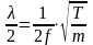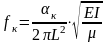 Данный расчёт справедлив для части пролёта, на которой не присутствует линейная арматура и виброгасители. Однако же, часть провода, выходящая из точек крепления и в местах установки виброгасителей имеет другую форму колебаний и, эти участки кабеля необходимо рассматривать как жёстко закреплённую балку, подверженную колебаниям. В этих местах расчёт частоты вибрации ведётся следующим образом.