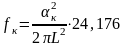 Частота колебаний жёстко заделанного по концам стержня может быть определена из выражения: