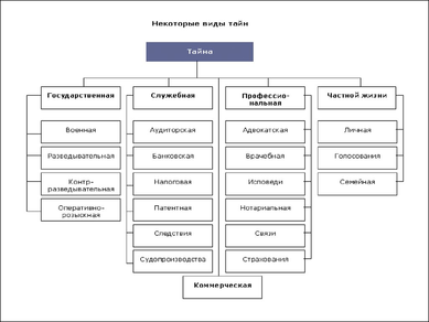 Перечень сведений конфиденциального характера приведен в Указе Президента РФ от 06.03.1997 № 188 "Об утверждении Перечня сведений конфиденциального характера" [1]. Исходя из него, можно определить виды тайн, которые приведены на рисунке 1.1.