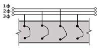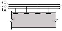 Принцип действия тот же, но в качестве электродов используются полосы шириной от 20 до 50 мм. Возможно размещать полосовые электроды как с двух сторон конструкции, так и с одной. Во втором случае, электроды подключаются к разным фазам поочередно, и электрическое поле образуется в примыкающем к ним тонком слое бетона, прогревая смесь у контактной поверхности.