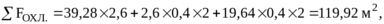 Толщина стены равна 0,4 м, высота стены цокольного этажа трехэтажного дома – 2,6 м, тогда сумма площадей охлаждаемых поверхностей составит:
