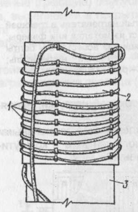 Рисунок 2.6 Индукционный прогрев стыка в котловане: 1-индукционная обмотка; 2-металлическа опалубка стыка; 3- колонна.