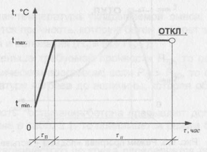 Рисунок 3.3 Режим прогрева «подъем - изотермический прогрев»: τп - время подъема температуры; τн - время изотермического прогрева; ОТКЛ. - момент отключения электрического тока
