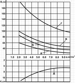 Рисунок 3.2 График для определения расстояние между электродами при групповом их размещении (а.б.в.и г.- кривые для определения расстояния между группами при напряжении тока соответственно 65,87,106 и 220в; Д-кривая для определения расстояния между электродами в группе.