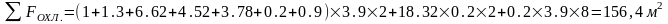 сумма площадей охлаждаемых поверхностей бетонируемого участка стены, м2;