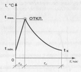 Рисунок 3.5 Режим прогрева «подъем - остывание»: τп - время подъема температуры; τо - время остывания; откл. - момент отключения электрического тока