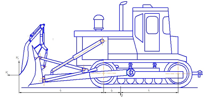 Рисунок 28 – Расчетная схема бульдозера на устойчивость.