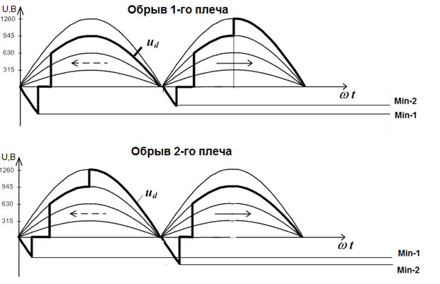 Рисунок 2.14 – Управляющие импульсы при обрыве 2-го плеча