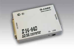 Связь между ВИП и ПК осуществляется при помощи универсального модуля ввода-вывода Е440, в состав которого входит аналогово-цифровой преобразователь (АЦП), цифро-аналоговый преобразователь (ЦАП) и цифровой порт (ЦП). С помощью данного модуля напряжение