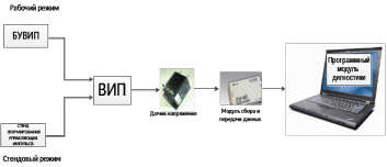 Реализованная система диагностики может работать с ВИП, который установлен на электровозе, так и в стендовом режиме. Схема работы в обоих случаях представлена на рисунке 2.21 [32,38.39].