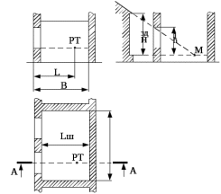 – ширина помещения; l – расстояние от противоположной световым проемам стены до расчетной точки РТ, принимаемое равным 1 м; В – глубина помещения;