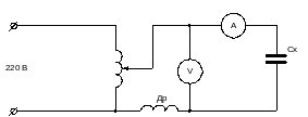 Измерение ёмкости методом вольтметра – амперметра производится по схеме на рисунке 9.1. В схеме измерения используют приборы электромагнитной или электродинамической систем.