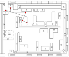 Рисунок 3.15 - Диаграмма «спагетти» перемещения рабочего при ремонте авторегуляторов.
