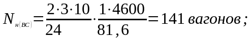Таблица 1.7 – Расчет количества вагонов, находящихся под накоплением на направлении