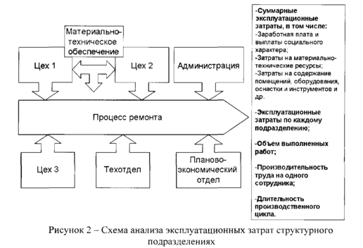 Рисунок 1.4 – Схема анализа эксплуатационных затрат структурных подразделениях
