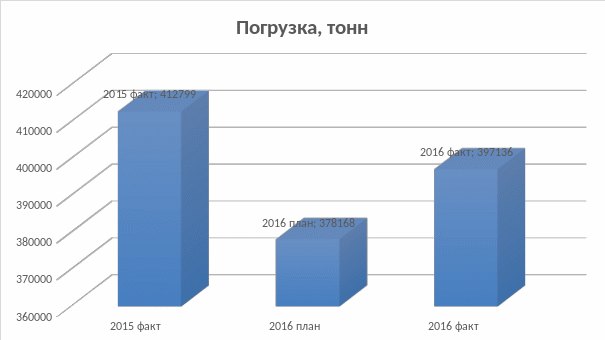 План погрузки выполнен на 105,0%, при плане 378168 тонн погрузка составила 397136 тонн. В сравнении с 2015 годом погрузка снизилась на 3,8% за счет снижения погрузки зерновых по причине снижения сбыта у контрагента (ООО «Амурская зерновая компания», ООО «Мой город», ИП Викулов, ООО «ТЛК»), снижения погрузки машин и оборудования в связи с перевозкой их автотранспортом (ООО «Спецтранс, ТК Рефтранс-экспедиция, АРТК Сервис).