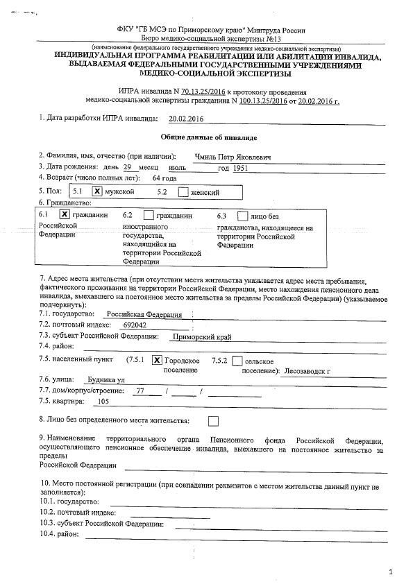 РИЛОЖЕНИЕ Д Индивидуальная программа реабилитации