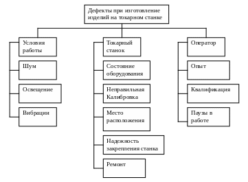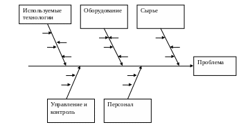 Диаграмма Исикава представляет собой средство графического упорядочения факторов, влияющих на объект анализа. Диаграмма Исикавы дает наглядное представление не только о тех факторах, которые влияют на изучаемый объект, но и о причинно-следственных связях этих факторов. В основе построения диаграммы лежит определение (постановка) задачи, которую необходимо решать [4].