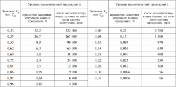 равном 0,424286 процент несоответствующей продукции составит 16 % , а число несоответствующих единиц на миллион единиц продукции составит 160000.