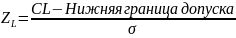 - расстояние от среднего средних до нижней границы допуска в единицах сигм(σ)