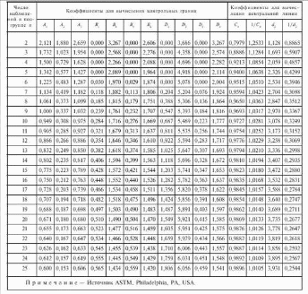 Таблица А.1 – Коэффициенты для вычисления контрольных границ