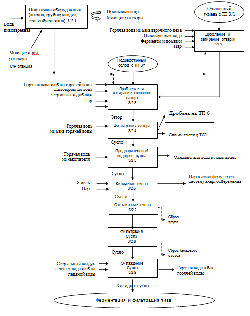 На рисунке 13 изображена блок-схема процесса приготовления сусла, применяемая в ООО «ОПХ» филиал «Амур-пиво».