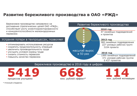 Рисунок 2.1 – Развитие бережливого производства в ОАО «РЖД» за 2016 год